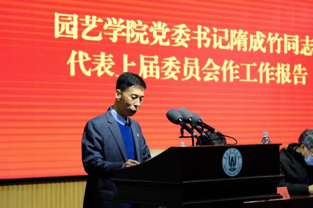 党员大会在庄严的国歌声中拉开帷幕。隋成竹同志代表学院上届委员会作了题为《坚持立德树人 强化学科引领 服务国家战略 奋力开创高质量发展新局面》的工作报告,回顾了学院五年来取得的主要成绩,总结了主要经验,分析了学院发展存在的问题,明确了今后五年发展目标和主要任务。报告指出:304am永利集团官网在校党委、校行政正确领导下,深入贯彻落实新时代中国特色社会主义思想,强化党组织和党员队伍建设,积极进取,奋力开拓,实现了高质量发展阶段性突破。成功获批园艺学博士点,实现办学层次提升;加强学科团队优化整合,科研工作全面提升;坚持引育并举,优化师资队伍;加强专业内涵,深化教学改革;对接黄河重大国家战略,积极开展社会服务;党建带团建,育人质量不断提升;加强对外交流,合作办学成效显著。站在新起点,面向新征程,学院要坚持以习近平新时代中国特色社会主义思想为指导,深入学习贯彻党的二十大精神,在校党委、校行政的坚强领导下,以高质量党建引领高质量发展,加强发展宏观思维和顶层设计,扎实落实十四五发展规划,强化学科建设龙头地位,突出教学中心地位,凸显教师队伍主体地位,瞄准人才培养核心目标,聚焦立德树人根本任务,实施党建引领、人才强院、学科提升、专业建设、科研提升、学生品牌创建、文化引领等系列工程,推动办学水平持续提升。