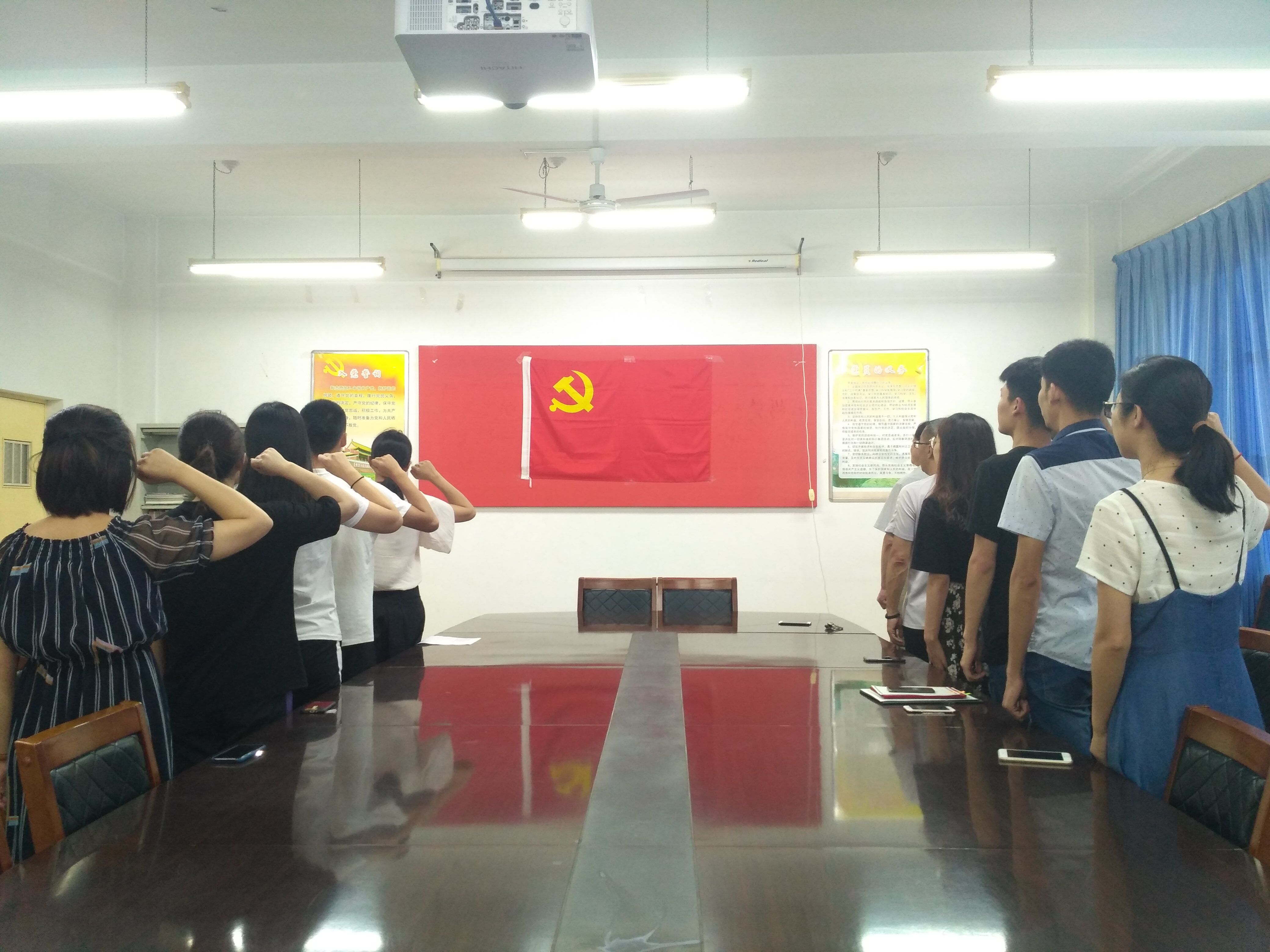 会议在庄严的《国际歌》中拉开序幕。首先,辅导员宋颖芳带领全体党员面向党旗,握紧拳头,庄严宣誓,表达永远忠于中国共产党的决心。