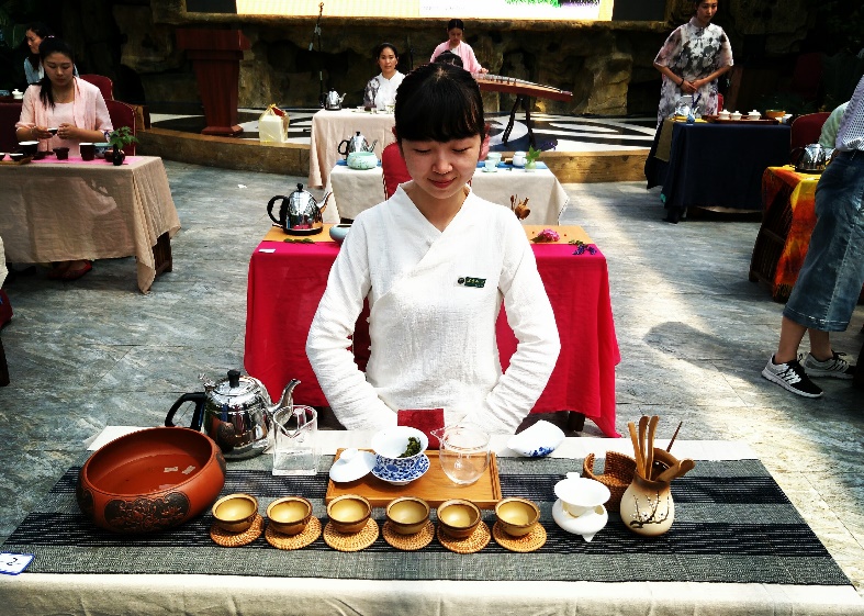 (1)茶艺大赛(总分100分):参赛选手从提供的绿茶、乌龙茶、红茶三种茶艺中抽取一种进行表演。通过茶席设计、茶文化主题阐述、茶艺冲泡展示等形式来展示茶的色、香、味、形品质和茶艺美学,用艺术的手法比拼茶叶冲泡的技术。
