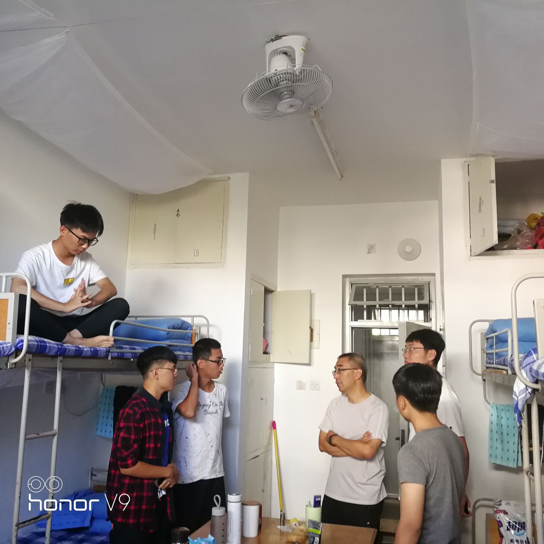 9月14日,304am永利集团官网党委副书记、副院长、学工办主任王春晓,辅导员马文哲走访学生宿舍,了解中秋节留校学生思想动态并带去节日的祝福与问候。