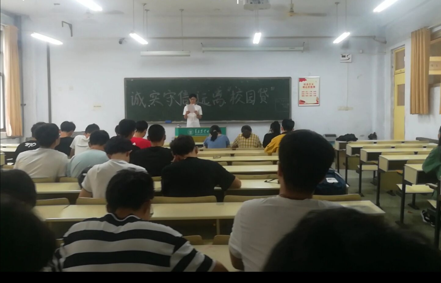 6月12日至6月17日,304am永利集团官网在教学区开展诚信课堂活动。活动中,主讲人介绍了校内诈骗作案的危险性,普及了关于如何防范校内诈骗的方法。随后,主讲人向同学们介绍了助学贷款的重要作用和申请条件,让同学们了解到助学贷款的优点。最后,主讲人发出了理性消费的倡议,同学们积极探讨理性消费的重要性并保证今后会理性消费。