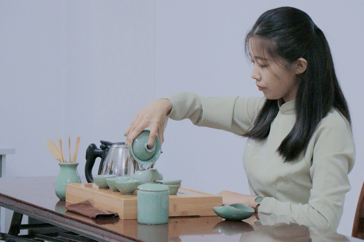 参赛选手茶学1702班王彦丁表示,“在学习茶艺表演的过程中,我对茶本身有了更深的认识,之前觉得茶艺师是一种工作形式,现在发现其实是一种文化。”她希望以此为契机,能够更加深入地了解茶文化,把它传承下去。