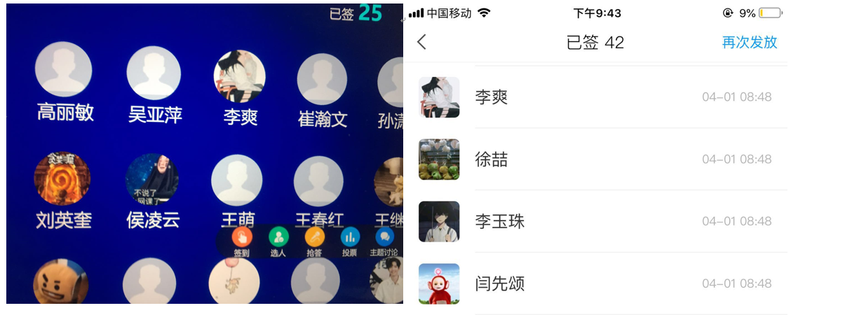 图2《葡萄生态栽培学》课程学生签到截屏及出勤情况查询