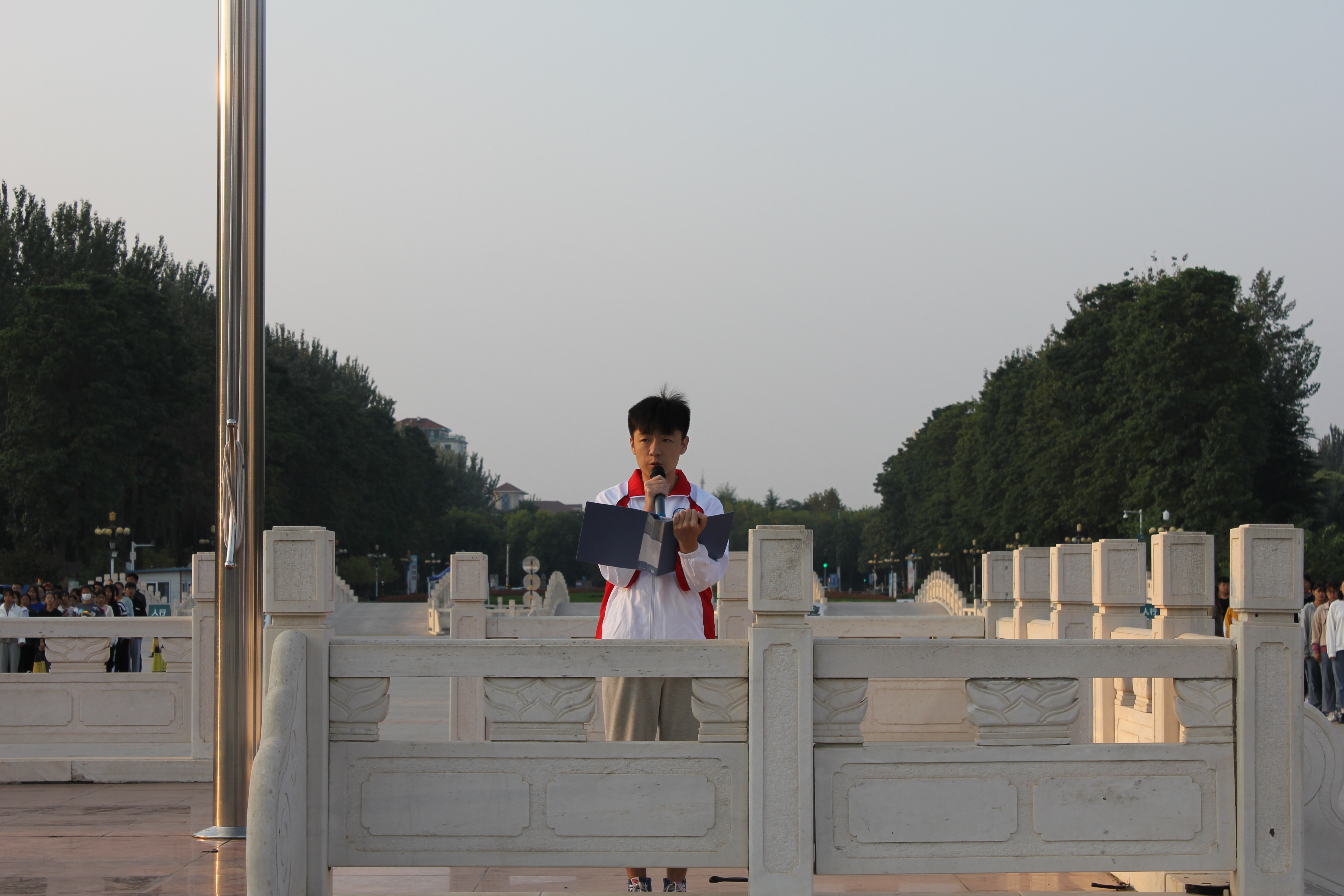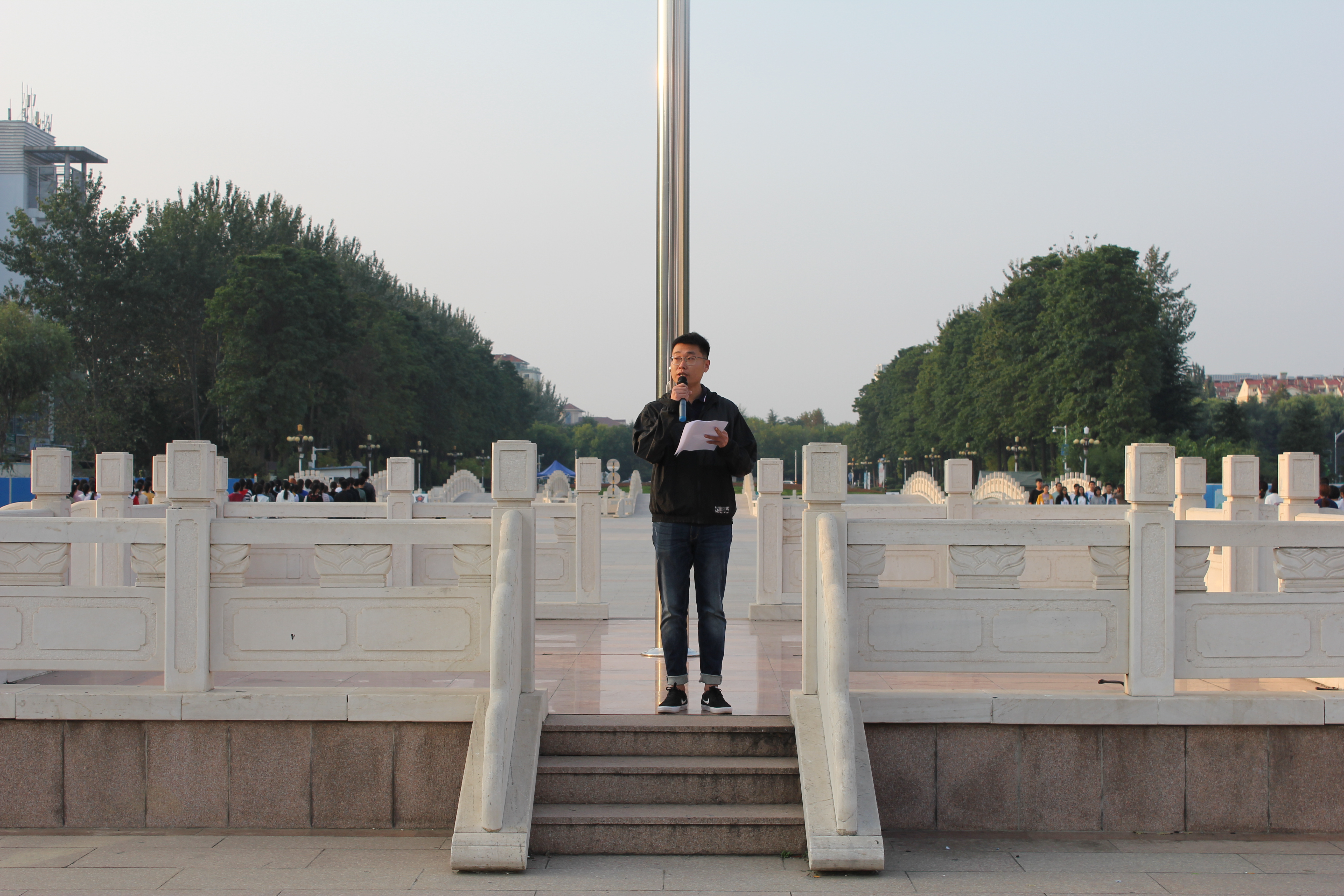 辅导员马文哲也发表了国旗下的演讲,他表示,青年人要守初心,坚定共产主义信仰,以国家英雄为榜样,努力学习,将个人理想融入党和国家的发展方向中去。他向全体学生提出要求:“希望学生成为爱党爱国、忠诚干净的新时代青年,成为有情操、有赤子之心的新时代青年,成为有本领、有担当的新时代青年。”