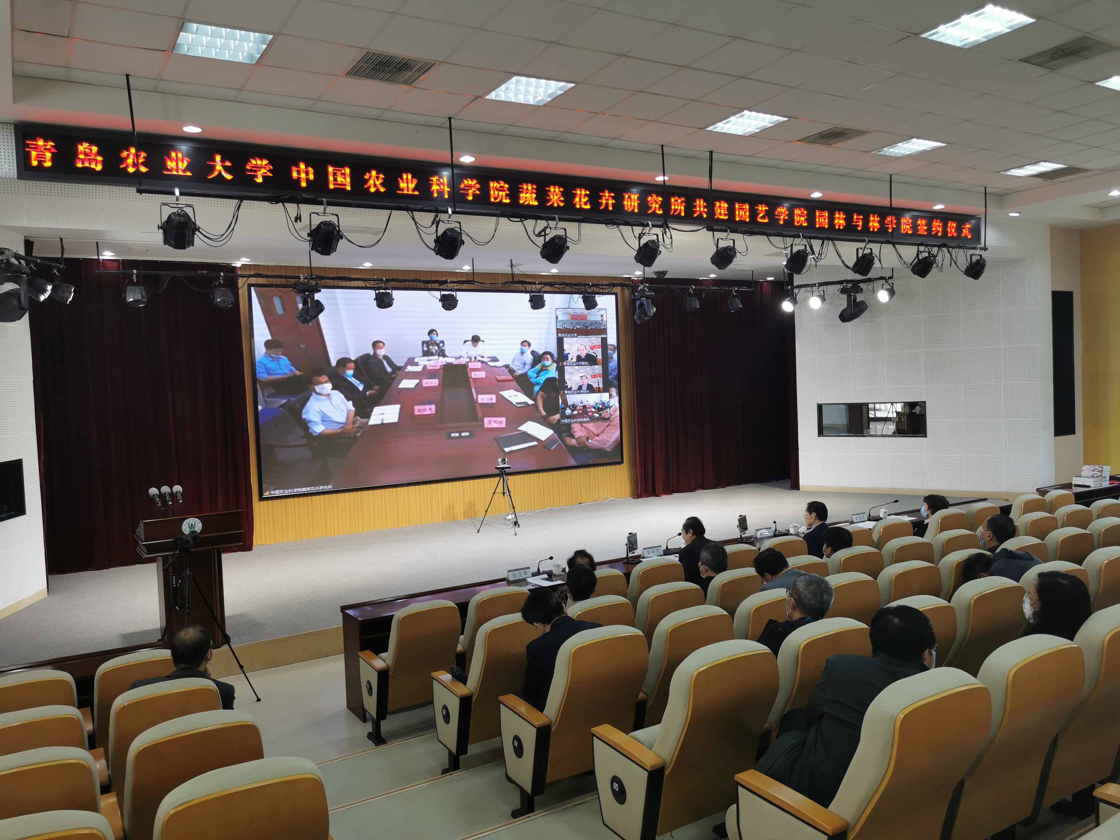 4月30日下午,青岛农业大学与中国农业科学院蔬菜花卉研究所共建304am永利集团官网及园林与林学院合作协议签约仪式,仪式通过视频连线形式举行。青岛农业大学校长宋希云、副校长刘春霞与中国农业科学院蔬菜花卉研究所所长张友军、党委书记周霞等所领导共同出席签约仪式,宋希云与张友军共同签署合作协议。副校长刘新民主持仪式。