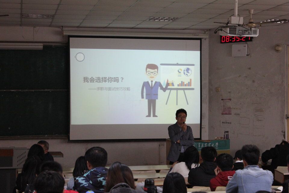 李永胜从求职简历制作、面试着装和礼仪、面试攻略和应对技巧三个方面向同学们进行了详细的讲解。李永胜通过毕业生求职实例,告诉同学们找到一个适合自己的工作,除了需要具备专业知识和技能之外,也需要具有良好的心理素质和一定的求职技巧。最后,李永胜向同学们介绍了就业程序与政策,并鼓励同学们调整好心态,积极就业。李永胜用幽默的讲述和对就业问题的深入讲解赢得了同学们的热烈掌声,同学们表示受益匪浅。