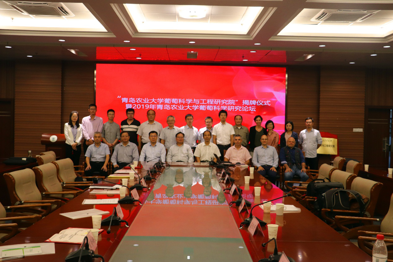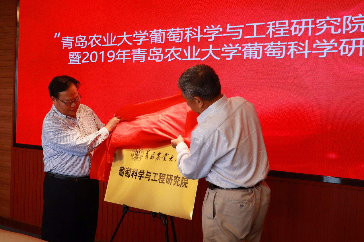 9月26日,青岛农业大学葡萄科学与工程研究院成立大会暨2019年青岛农业大学葡萄科学研究论坛在青岛农业大学召开。山东省农村农业厅果茶技术指导站崔秀峰副站长、青岛农业大学副校长原永兵教授、原副校长戴洪义教授、西北农林科技大学原副校长王跃进教授、中国农业科学院果树研究所原所长刘凤之研究员、中国农业科学院郑州果树研究所副所长刘崇怀研究员以及来自法国、美国、意大利、日本等4个国家的40余位葡萄专家出席会议。青岛农业大学原副校长戴洪义教授与西北农科科技大学原副校长王跃进教授为葡萄科学与工程研究院揭牌。成立大会由304am永利集团官网院长张忠华主持。