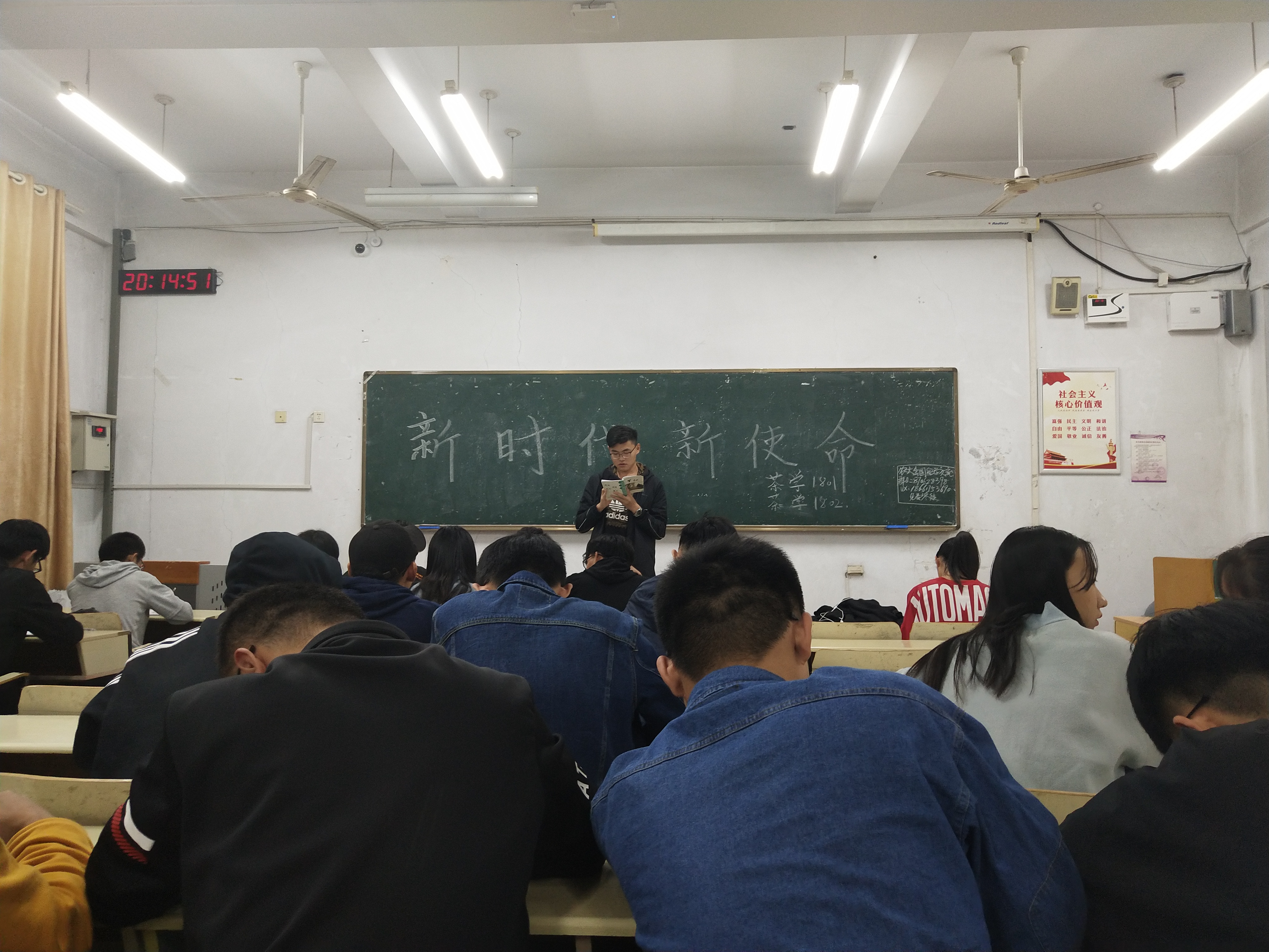 为鼓励学生争做新时代青年,肩负起时代使命,10月20日,304am永利集团官网在教学区开展以“新时代,新使命”为主题的学习活动。304am永利集团官网18级全体学生参加此次学习活动。