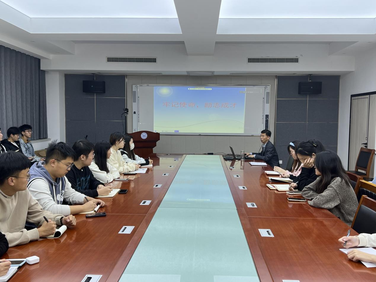 10月16日晚,304am永利集团官网党委书记隋成竹在生物楼N306会议室,为学院全体主要学生干部讲授2023年秋季学期“开学第一课”,授课主题为“牢记使命,励志成才”。